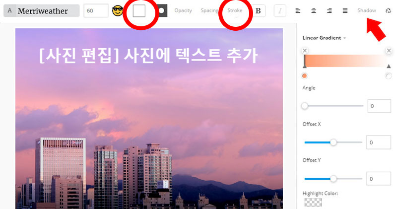 텍스트 윤곽선, 텍스트 그림자, 그라디언트 색상과 같은 텍스트 스타일을 추가하십시오.